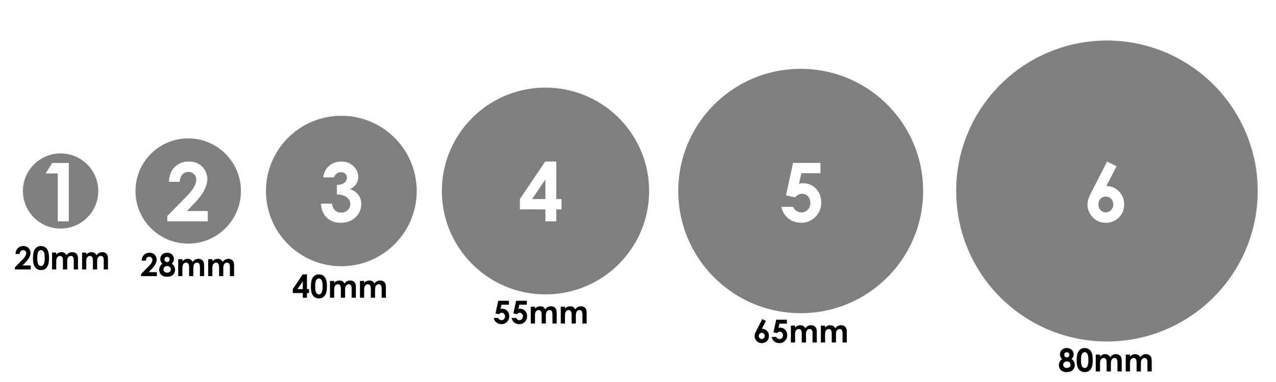 Unit Sizes and their base diameters